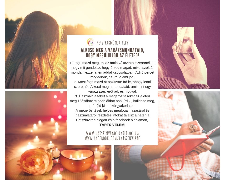 Ismételgesd őket magadban, hogy ezáltal kondicionáld át a gondolkodásodat egy másik, pozitív frekvenciára! Nagyon hatásos, ha naponta szánsz arra pár percet, hogy 1-2 alkalommal, háromszor megismételve, tükörbe nézve, egy-egy izommozdulattal kísérve elmondod magadnak. Ezt csináld legalább 1 hónapon keresztül. A lényeg, hogy éld bele magad a helyzetbe! Érezd, ahogy megvalósult a kívánt cél! Lehet, hogy ezeknek a mondatoknak a hallatára megszólal egy kis hang a fejedben, ami ellenkezik, és nem hisz el egy szót sem az elmondottakból. Vagy megeshet, hogy egyszerűen csak rosszul érzed magad, miközben ezeket a gondolatokat ismételed. Ha ez előfordulna, akkor változtass a szövegen! Keress olyan mondatokat, amiket el tudsz hinni, és amiket boldogan ki tudsz mondani! Hiába mondod azt, hogy “Türelmes vagyok.” ha közben majd szétfeszülsz az idegtől. A szavak mellett a hozzájuk kapcsolt érzések is nagyon fontosak. A gyakorlatnak csak akkor lesz hatása, ha érzelmileg is beleéled magad, és tényleg átérzed a kívánt dolgot, miközben mondod a szöveget.