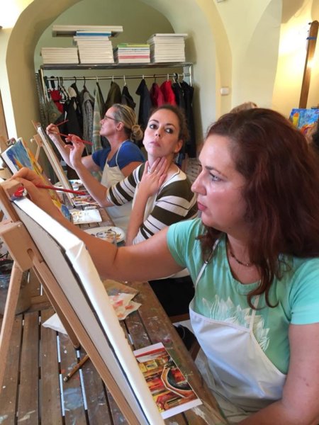 - Rájöttem, hogy sokkal egyszerűbb gyakorlott alkotóktól megtanulni az alap technikákat, mint otthon egyedül akciózni, így elkezdtem járni alkotó napokra. Lehetőségeimhez mérten évi pár napot sikerült rászánnom. Belekóstoltam a selyemfestésbe Csizmadia Kláránál és Rózsa Judit Írisznél személyesen, valamint beiratkoztam itt is egy online kurzusra a selyemfestes.com-on. Imádom a selymet, azok a gyönyörű színek, amikkel festünk, már maga a látványuk is terápiás hatású, de komolyan 🙂 Kipróbáltam a mandala festést üvegre is Németh Líviánál és Tatai Timinél, ez is ez csodás világ. A magyar mandalák világába tett utazásomról meséltem a régi blogomon is a Miről dalol a Mag Dala? írásomban, ha valakit vonz a téma. Egy másik kreatív vonal, ami közel áll hozzám, azok a fényképek, az emlékalbumok készítése, azaz a scrapbook. Sokat inspirálódtam és nagyon szeretnivaló anyagokat, alapokat kaptam a Scrapfellow KitKlub-ban, ami egy nagyon jó lehetőség kezdőknek. Minden hónapban kézhez kapsz egy adott téma szerint összeállított alkotócsomagot – kezdőként nekem ez hatalmas segítséget jelentett az induláshoz – és sok-sok inspirációt, ötletet a felhasználáshoz. A scrapbooknak létezik egy digitális változata is, ahol nem kézzel fogható albumokat készítesz, hanem gépen szerkeszted meg, állítod össze a fotókönyvet – én végül ebbe az irányba találtam meg jobban magam, amihez sokat tanultam a 7szindizajn online tanfolyamokon. A következő állomás a kreatív alkotásokban már idei project, nyáron felfedeztem, hogy nyílott a közelünkben, Veszprémben egy festő stúdió, az Artist for a day. Nagyon tetszett, de kicsit meg is ijedtem tőle, vajon hogy menne a dolog… a szeptember végét tűztem ki végső határidőnek, hogy addig mindenképp összeszedem a bátorságom, és kipróbálom. A tegnapi nap volt az. Jelentem kár volt eddig húznom. Egész elégedett vagyok a végeredménnyel is, de a lényeg, hogy csodálatos élmény volt, és nagyon jól tudtam belőle töltekezni, és ezt az érzést magammal hoztam haza a képembe zárva. Azt hiszem a dolgozó sarkomban lesz a helye, hogy mindig inspiráljon.