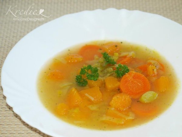 A zsiradékon lepirítjuk a zöldségeket, majd vízzel felöntjük a tetszőleges sűrűségűre, fűszerezzük és lassú tűzön főzzük, amíg a zöldségek megpuhulnak. Nem szoktam agyon főzni, akkor szeretem a legjobban, ha kicsit roppanósak még a zöldségek. Tálaláskor a tányérokba kis kupac sajtot reszelünk és arra merjük rá a forró levest, valamint megszórhatjuk még apróra vágott, friss petrezselyemzölddel is.