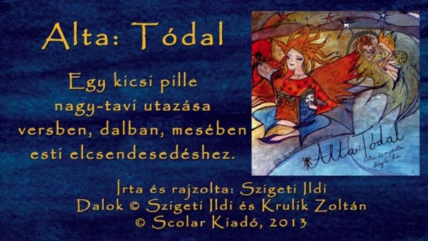 Szívből ajánlom figyelmetekbe Szigeti Ilditől az Alta:Tódal-t, ami egy kicsi pille nagy tavi utazásáról szól könyv versben, dalban, mesében az esti elcsendesedéshez. Igazán szeretni való történet, hasznos mondanivalóval, választékos nyelvezettel, tündéri grafikával.