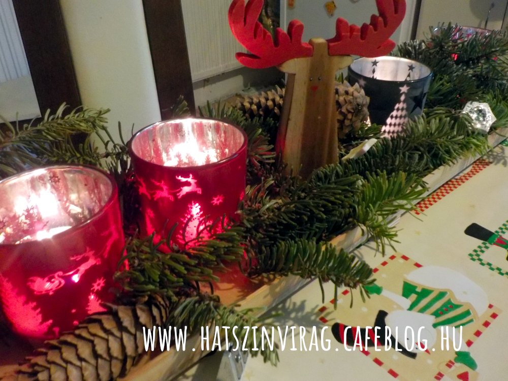 - Örökös-szarvasos: ez nálunk egy igazi közös családi projekt által született meg: Férjem készítette a fa alapot hozzá, amit a gyerekekkel feldíszítettünk tobozokkal, fenyőágakkal, és a Pepcoban vásárolt mécsestartókkal és szarvassal – amiket ragasztópisztollyal rögzítettem. Minden évben ezt használjuk: a tálca, mécsestartók, szarvas pajti adott, csak a zöld részt frissítjük.