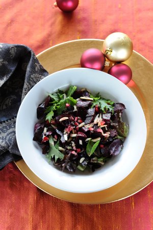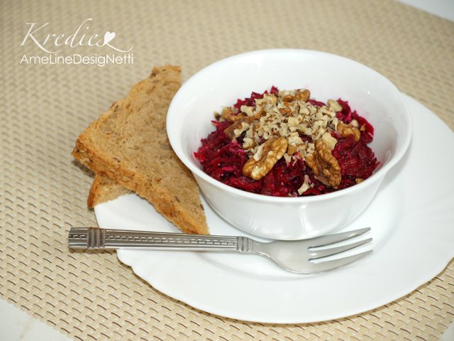 A céklát, répát és az almát meghámozzuk és nyersen belereszeljük egy salátás tálba. A narancs levét kifacsarjuk, sóval, borssal fűszerezzük, és rálocsoljuk. Végül a tetejére apróra vágott diót szórunk. Aki kedveli a keleties ízeket, fűszerezheti római köménnyel is.