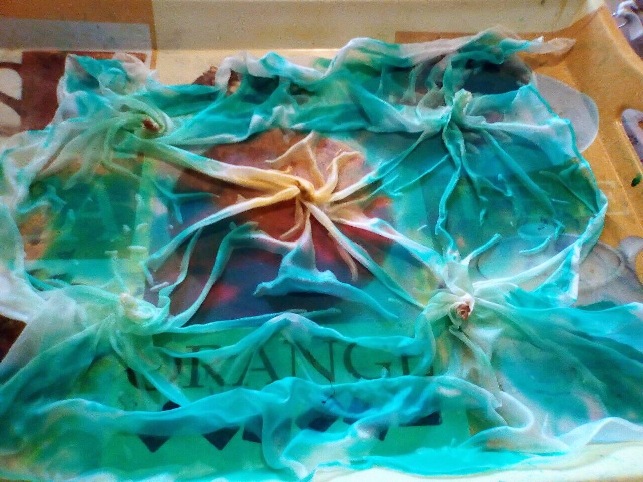 Ha már alkotás és színek, akkor meg kell említenem egy kedvenc technikámat: a selyemfestést. A selymen a színek varázsa valami leírhatatlanul pozitívan hat, amikor dolgozol vele, gyönyörűségesek. Ha nagyon nincs kedved alkotni, akkor készen is vásárolhatsz selyemképeket, sálakat, ékszereket.