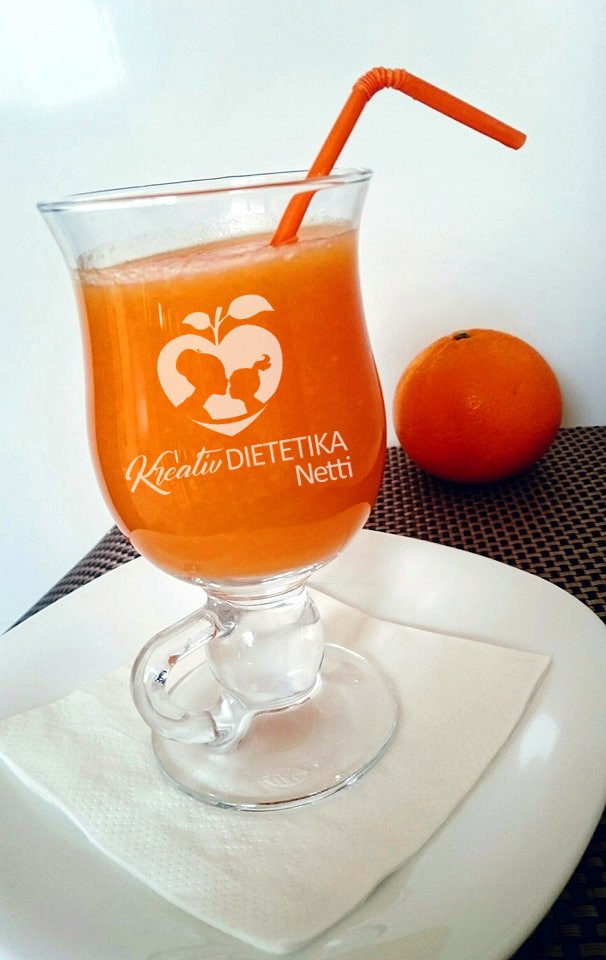 A narancs levét kifacsarjuk. Az almát meghámozzuk, répát apróra reszeljük, és az egészet összeturmixoljuk. Ízlés szerint tovább ízesíthetjük reszelt gyömbérrel és/vagy egy kis mézzel.