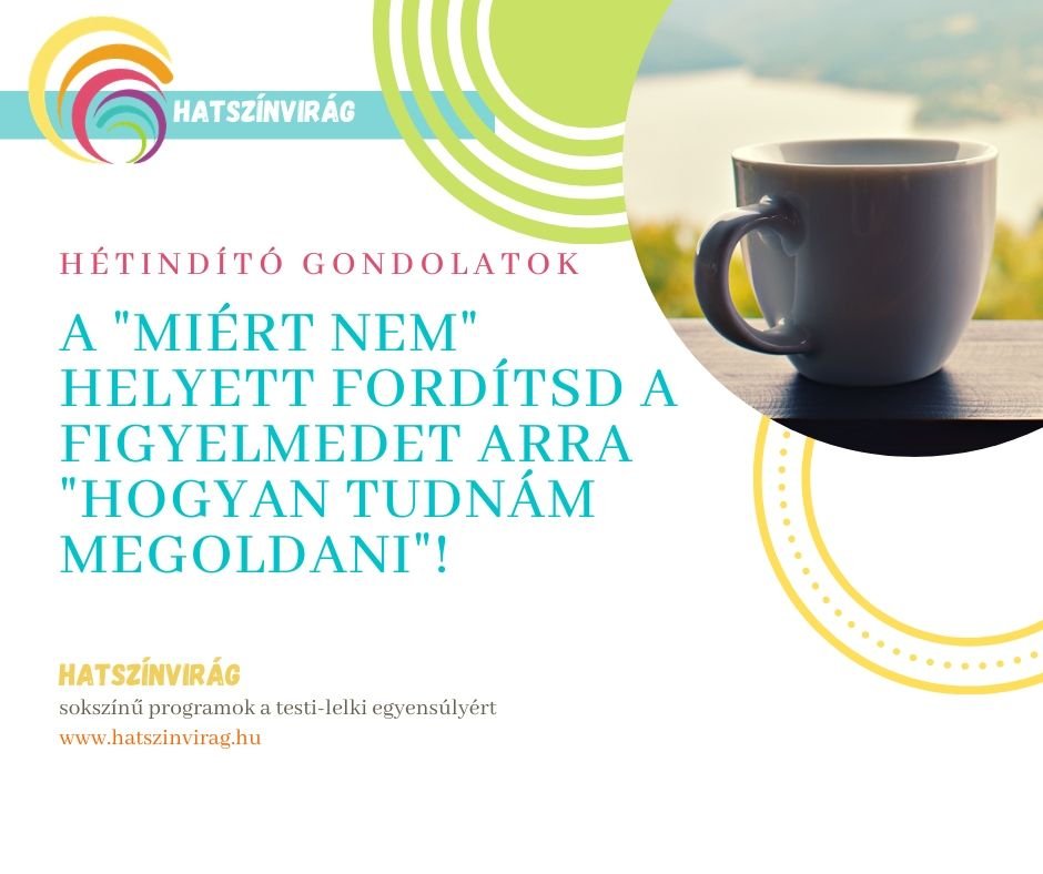 - Szeretettel várlak egy megoldásfókuszú coaching beszélgetésre, ahol empátiával, teljes figyelmemmel, megoldásfókuszú kérdésekkel és pozitív pszichológián alapuló gyakorlatokkal abban segítelek, hogy felfedezz új nézőpontokat, lehetőségeket, és más szemüvegen keresztül tekints a helyzetedre. Részleteket erről itt találsz.Ha tetszenek itt a Hatszínvirág blogon lévő tartalmak,